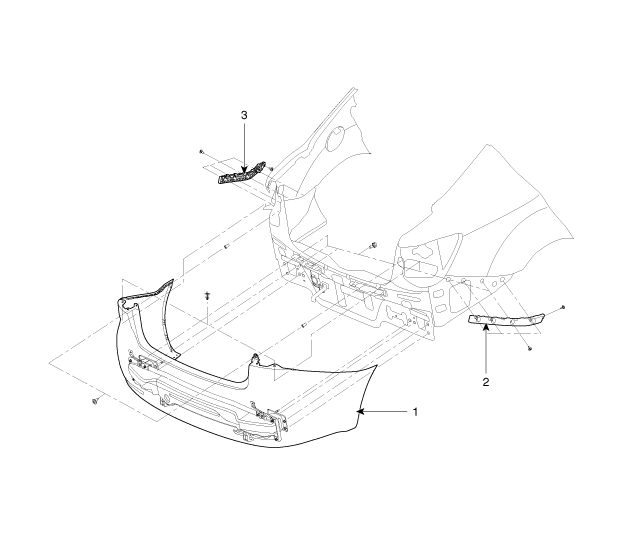 1. Recouvrement du pare-chocs arrière 2. Support latéral du pare-chocs arrière [D] |