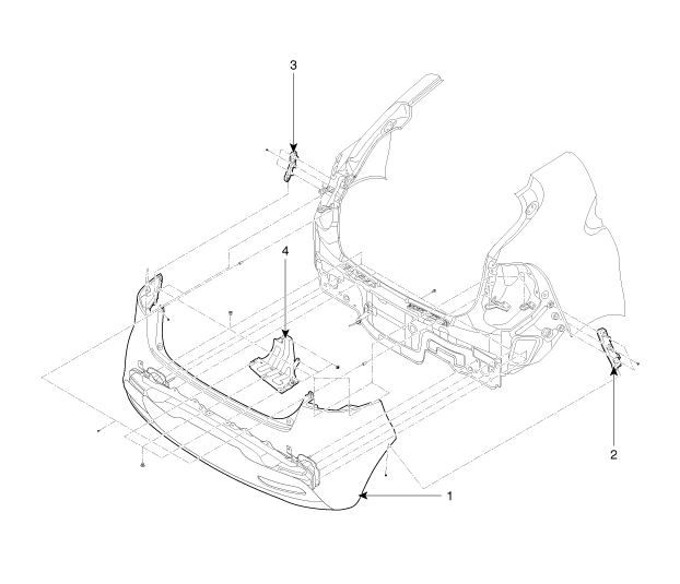 3. Support latéral du pare-chocs arrière [G] 4. Revêtement inférieur latéral du pare-chocs arrière |