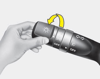 Quand le commutateur est placé à cette position (1er cran), les feux arrière, les feux de position, les feux de plaque d'immatriculation et l'éclairage du tableau de bord s'allument.