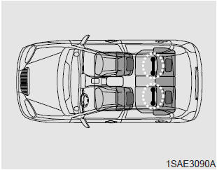 Votre véhicule est équipé d'ancrages LATCH. Les ancrages LATCH se trouvent aux places arrière gauche et droite. Leur emplacement est illustré. Il n'y a pas d'ancrage LATCH à la position centrale.